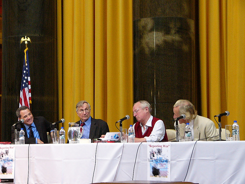 Above, from the left: Charles Glass (freelance journalist), Seymour Hersh (‘investigative’ ‘journalist’), Robert Fisk (Middle East ‘correspondent’ for The Independent), and John Pilger (conspiracy theorist). A panel discussion on “Reporting War” at Low Library Rotunda of Columbia University, April 14, 2006